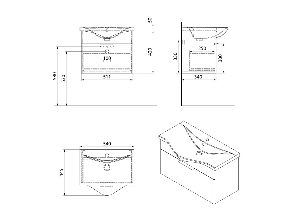 AKIRA umyvadlová skrinka 51,1x42x34cm, biela