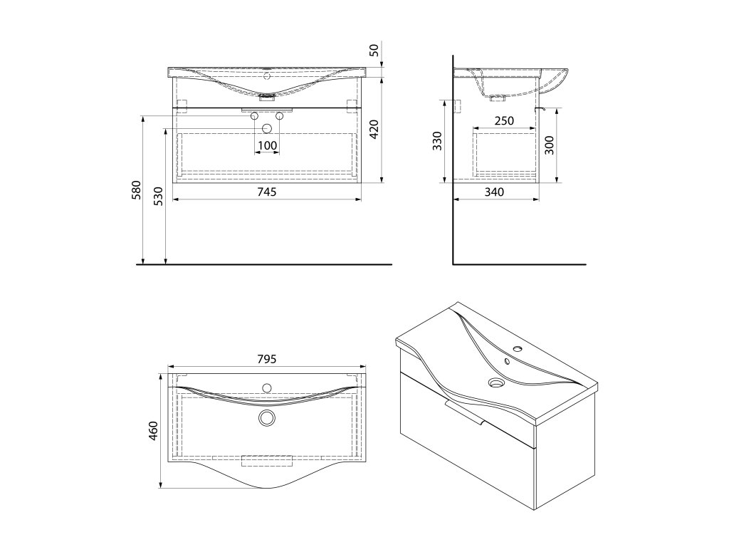 AKIRA umyvadlová skrinka 74,5x42x34cm, biela