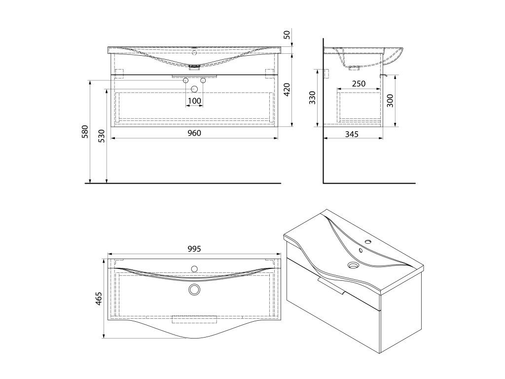 AKIRA umyvadlová skrinka 96x42x34cm, biela
