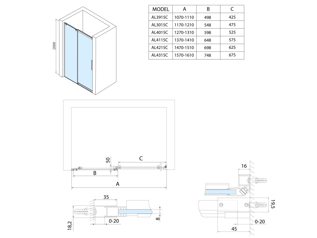 ALTIS sprchové dvere 1070-1110mm, výška 2000mm, číre sklo