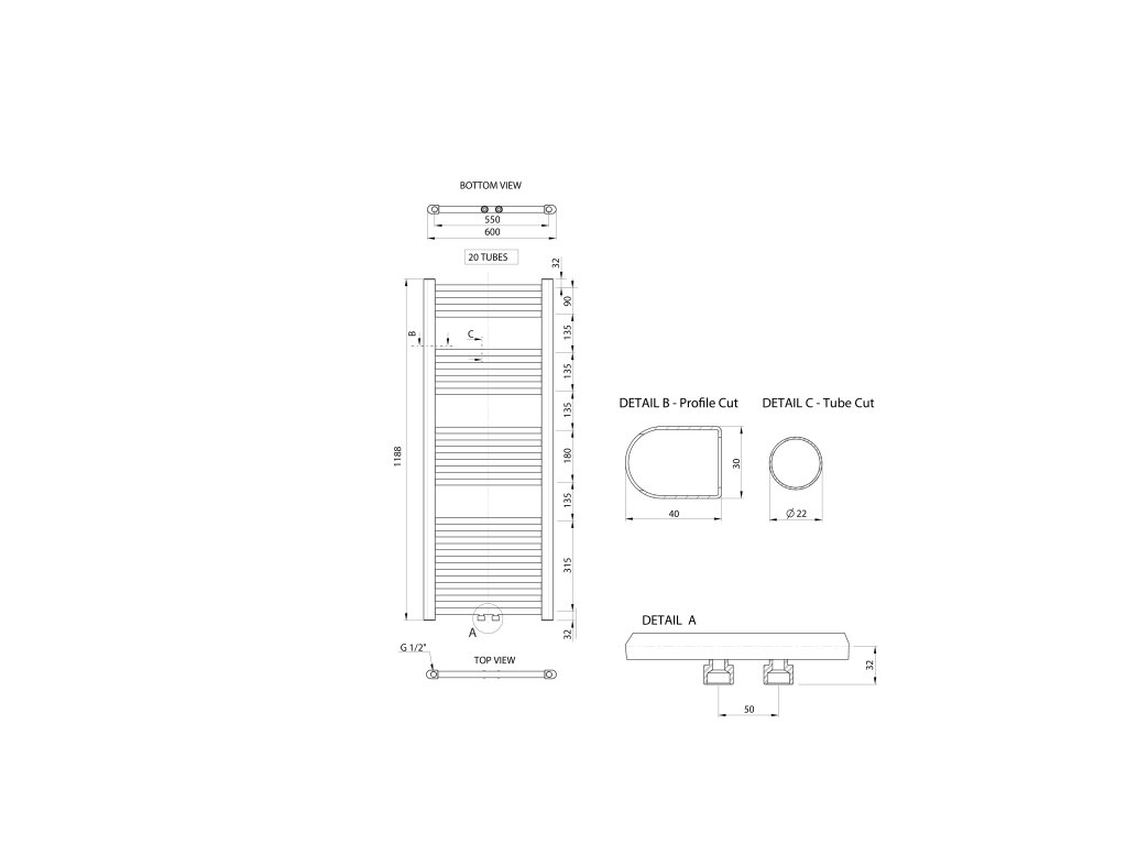 ALYA vykurovacie teleso rovné 600x1188mm, stredové pripojenie, chróm