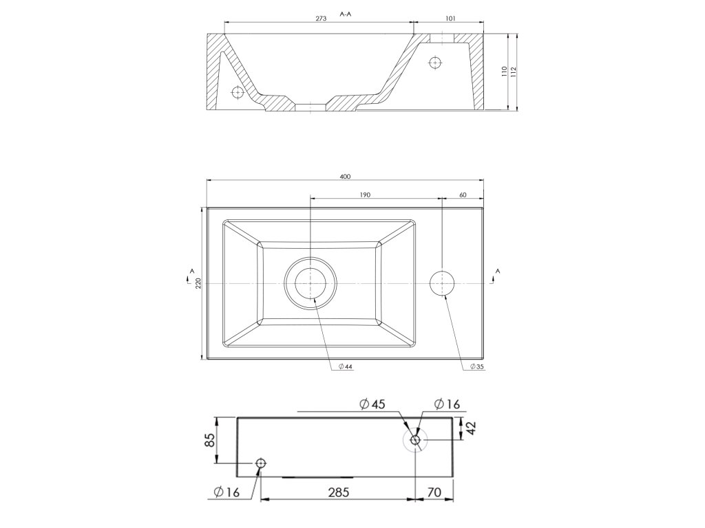 AMAROK liaty mramor umývadlo 40x22cm, čierna mat, batéria vpravo
