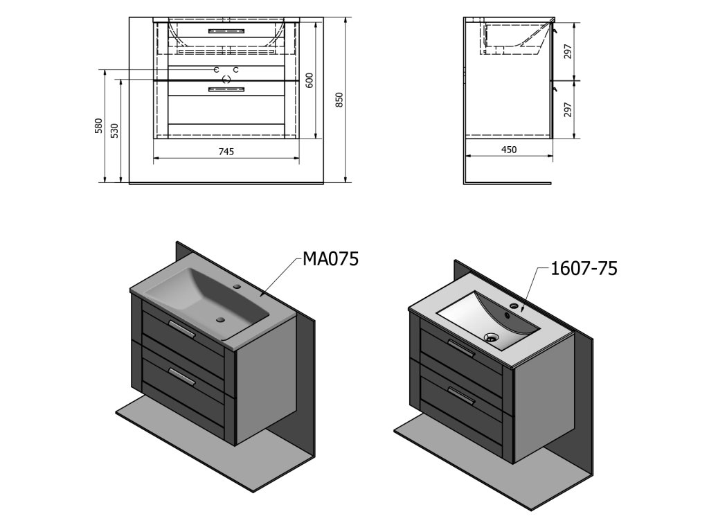 AMIA umývadlová skrinka 74,5x60x45cm, dub Collingwood