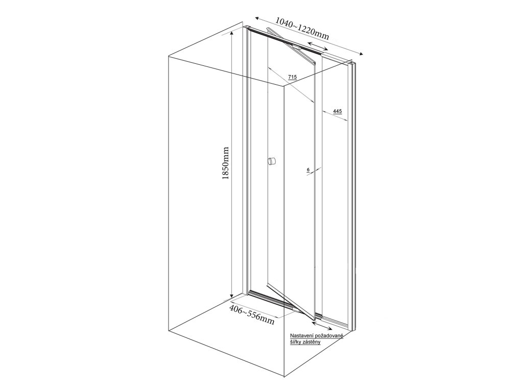 AMICO sprchové dvere výklopné 1040-1220x1850mm, číre sklo