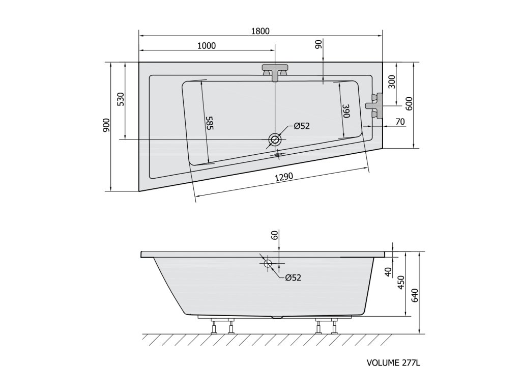 ANDRA L asymetrická vaňa 180x90x45cm, biela matná