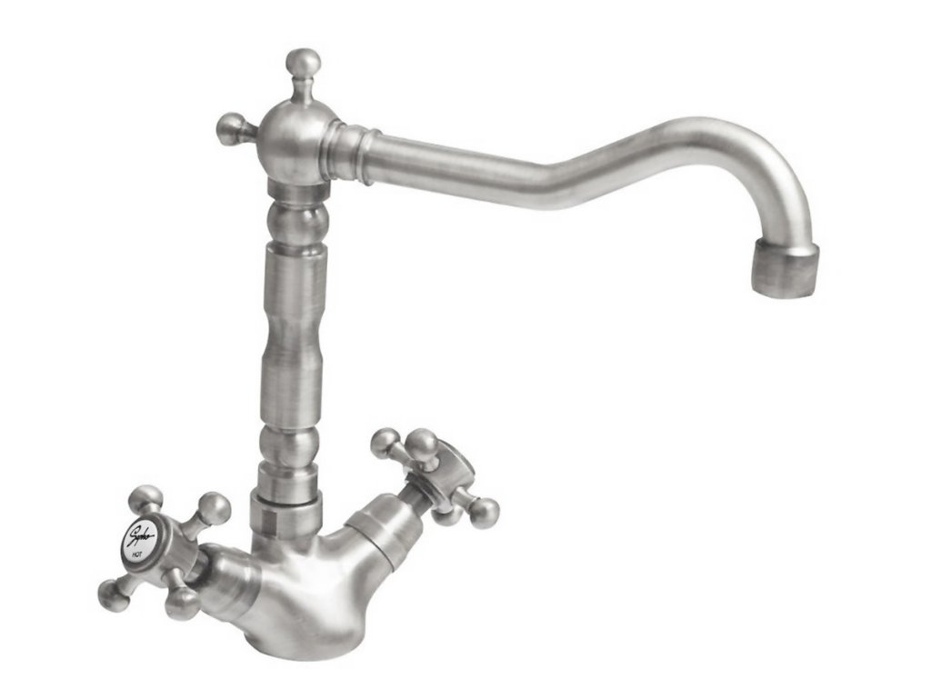 ANTEA stojánkova umývadlová batéria s retro hubicou s výpusťou, brúsený nikel