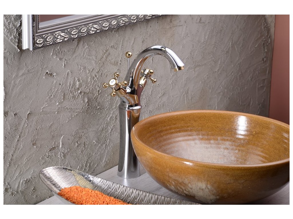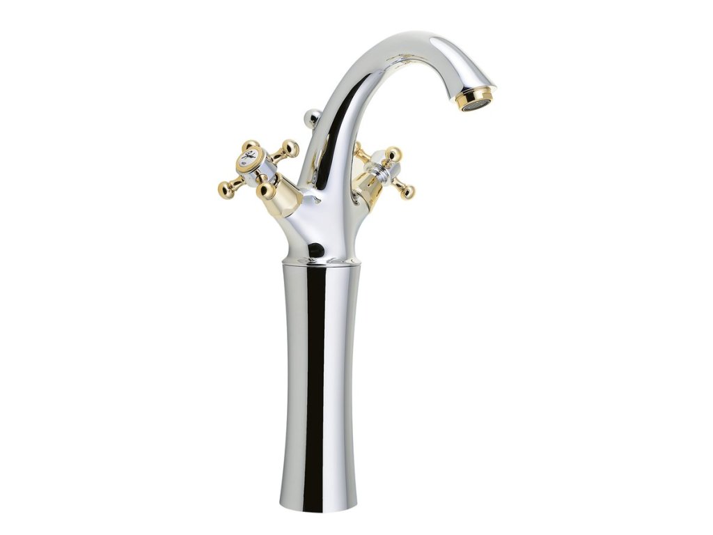 ANTEA stojánkova umývadlová batéria vysoká s výpusťou, výška 300mm, chróm/zlato
