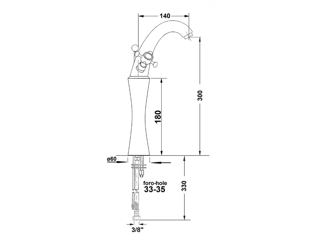 ANTEA stojánkova umývadlová batéria vysoká s výpusťou, výška 300mm,brúsený nikel