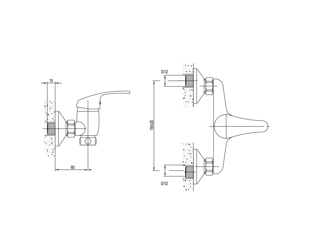 AQUALINE 35 nástenná drezová batéria 3/4", bez ramienka, chróm