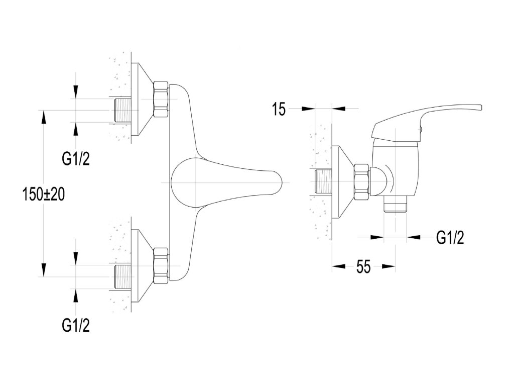 AQUALINE 35 nástenná sprchová batéria, chróm