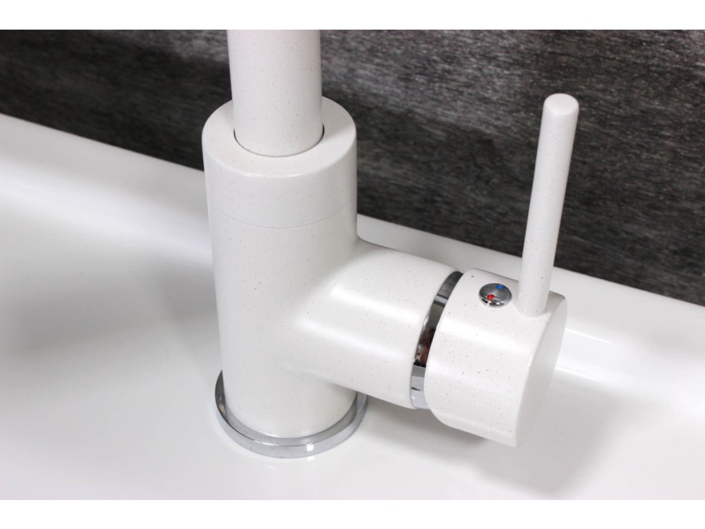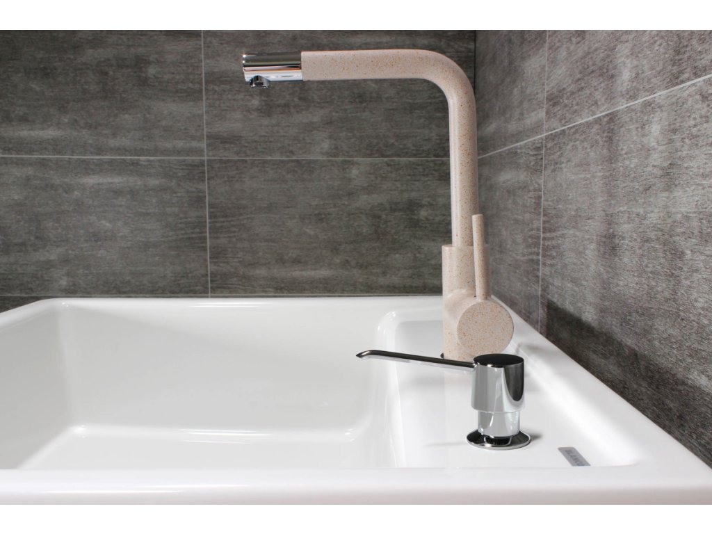 Granitová drezová batéria je vybavená kvalitnou 40 mm keramickou kartušou značky Kerox a perlátorom Neoperl znižujúcim spotrebu vody. Povrch batérie sa čistí podobne ako drez z rovnakého materiálu, v prípade potreby stačí pretrieť vlhkou handričkou s bežným saponátom.