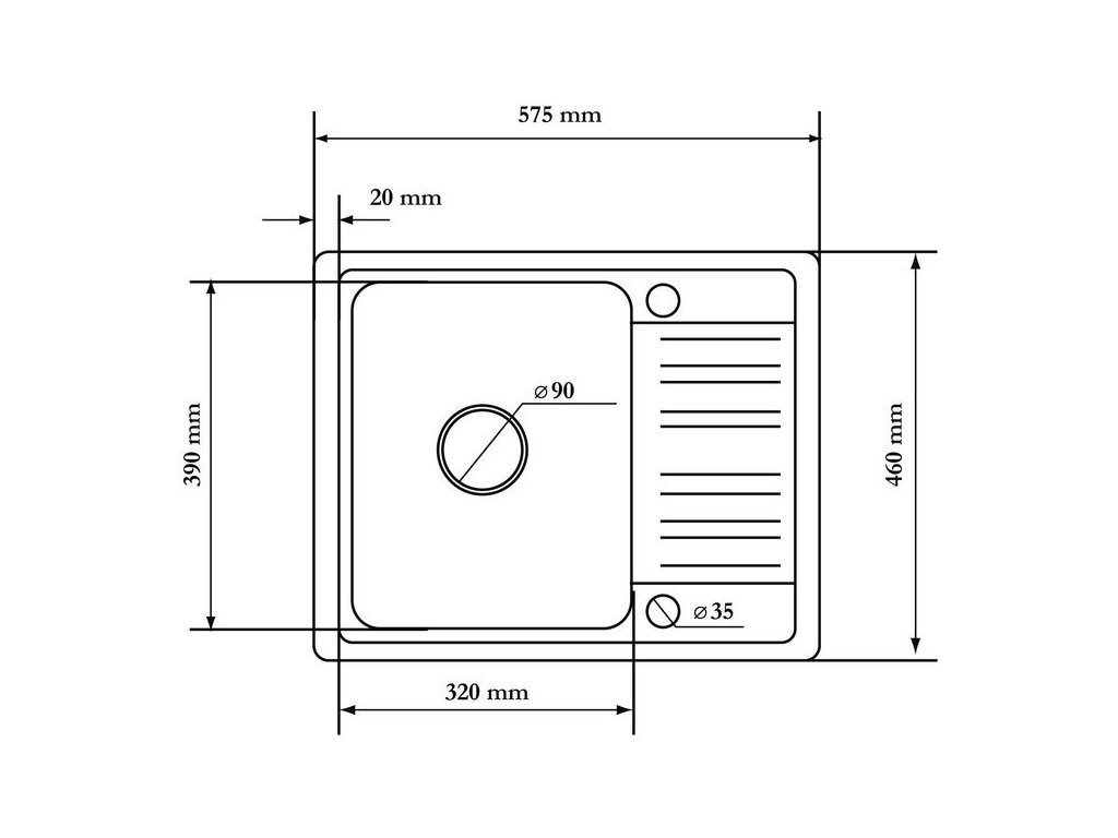 Vanička je štandardných rozmerov, preto pri umývaní riadu nie ste priestorovo limitovaní. Skrátená je iba odkladacia plocha. Hĺbka vaničky 19 cm je dostatočná na bežné umývanie veľkých plechov na pečenie alebo objemných hrncov. Rovnako praktická je aj odkvapová časť drezu. Drez má už vytvorené otvory na inštaláciu kuchynskej batérie a excentrického ovládania.