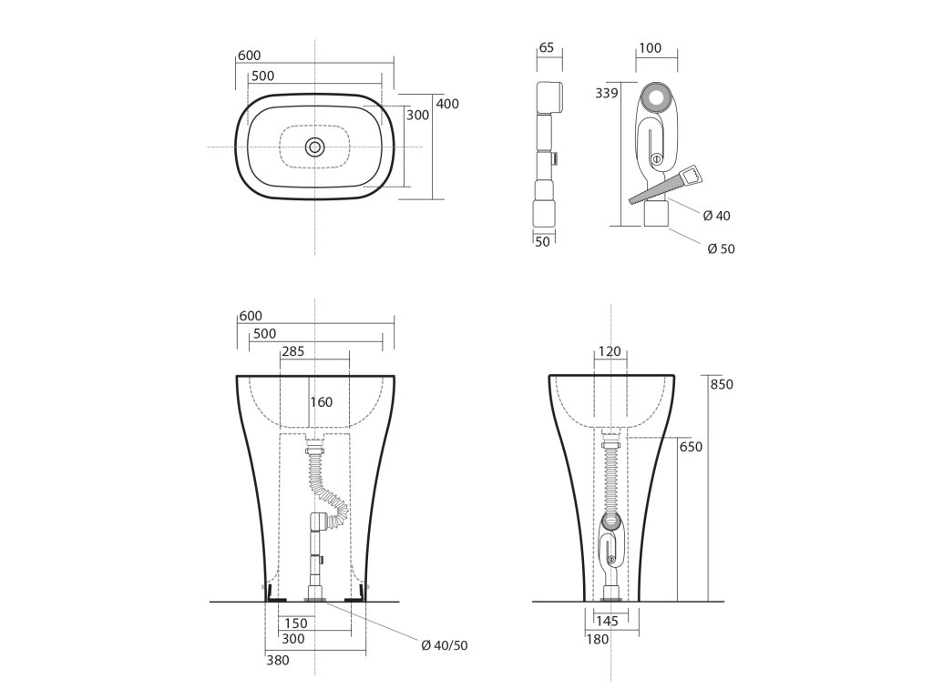 AQUATECH keramické umývadlo volne stojacé do priestoru 60x85x40cm, biela