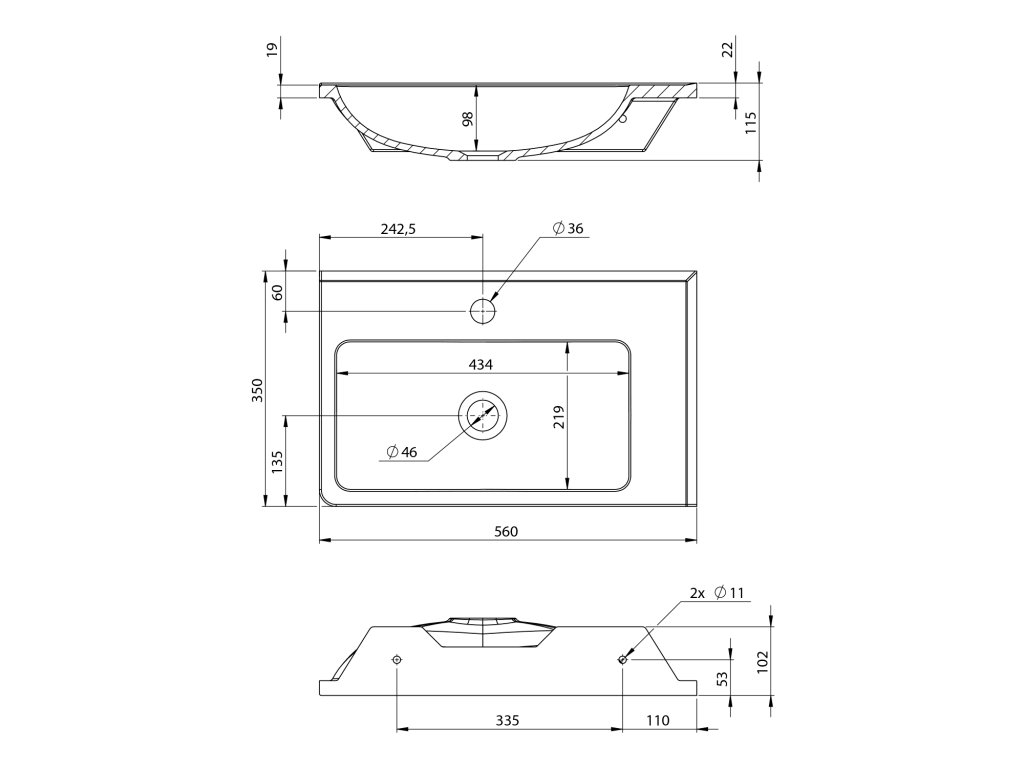 ARANA umývadlo 56x35cm, liaty mramor, biela, pravé