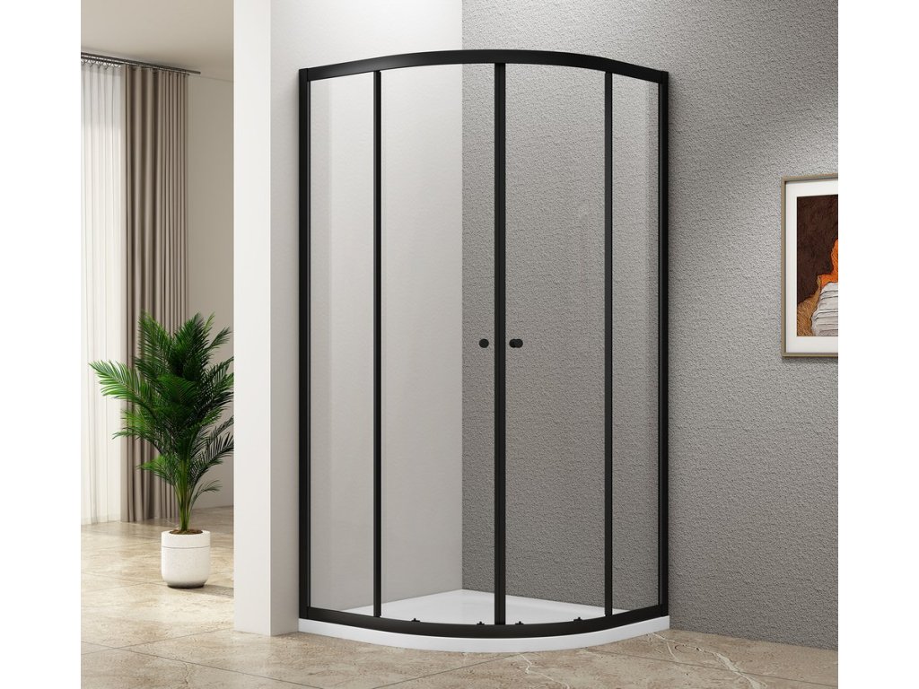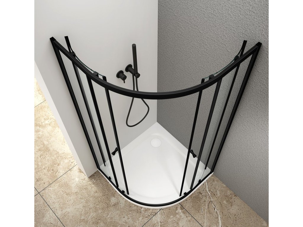 ARLETA BLACK štvrťkruhová sprchová zástena 900x900mm, číre sklo