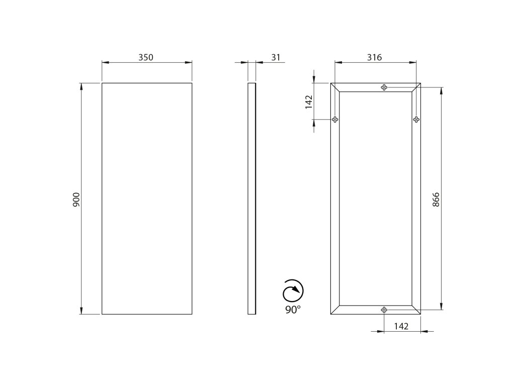 AROWANA zrkadlo v ráme, 35x90cm, chróm