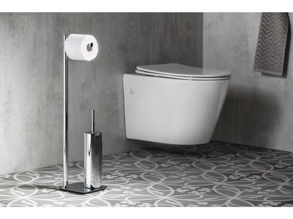 ARTU Stojan s držiakom na toaletný papier a WC kefou, hranatý, chrom