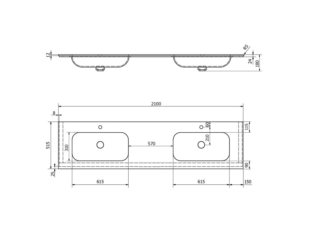 ARUBA dvojumývadlo, 210x51,5 cm, Rockstone biela matná