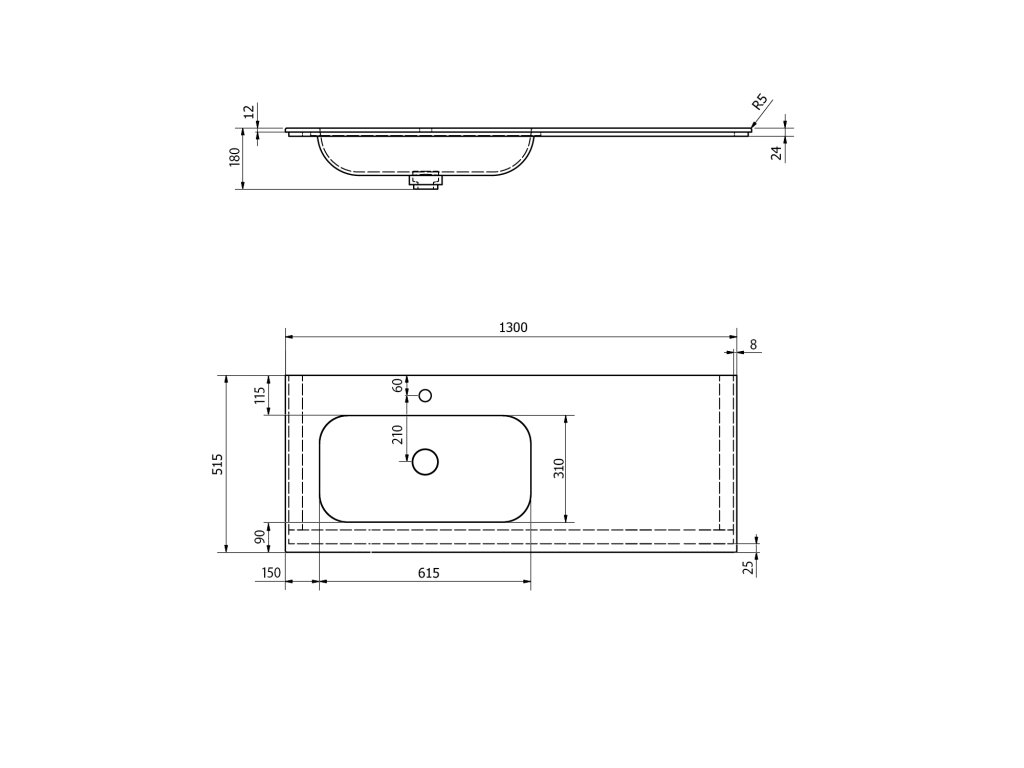 ARUBA umývadlo vľavo, 130x51,5 cm, Rockstone biela matná