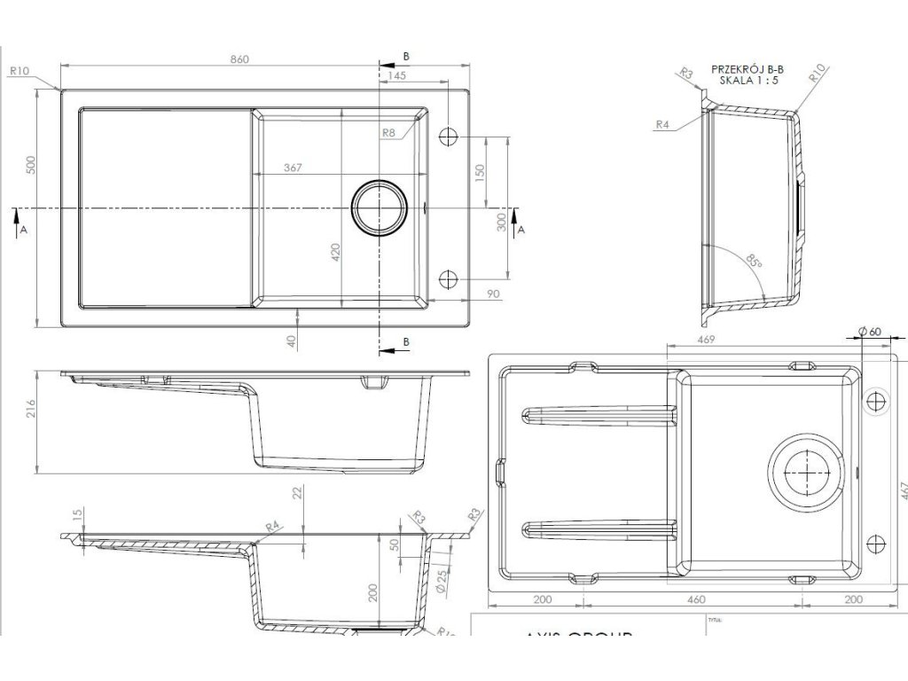 Kľúčové vlastnosti kuchynského drezu AXIS TRAMONTANA 860.0E