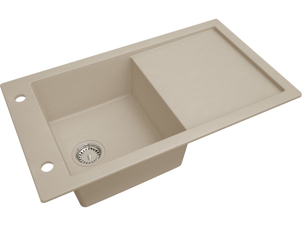 Ideálna veľká vanička aj dostatočne veľký odkladací priestor. Komora drezu o hĺbke 20 cm je dostatočná na pohodlné umývanie riadu . Praktický odkvap využijete na odkladanie riadu, zeleniny alebo pri rozmrazovaní potravín. Drez má už vytvorené otvory pre batériu aj excentrické ovládanie.