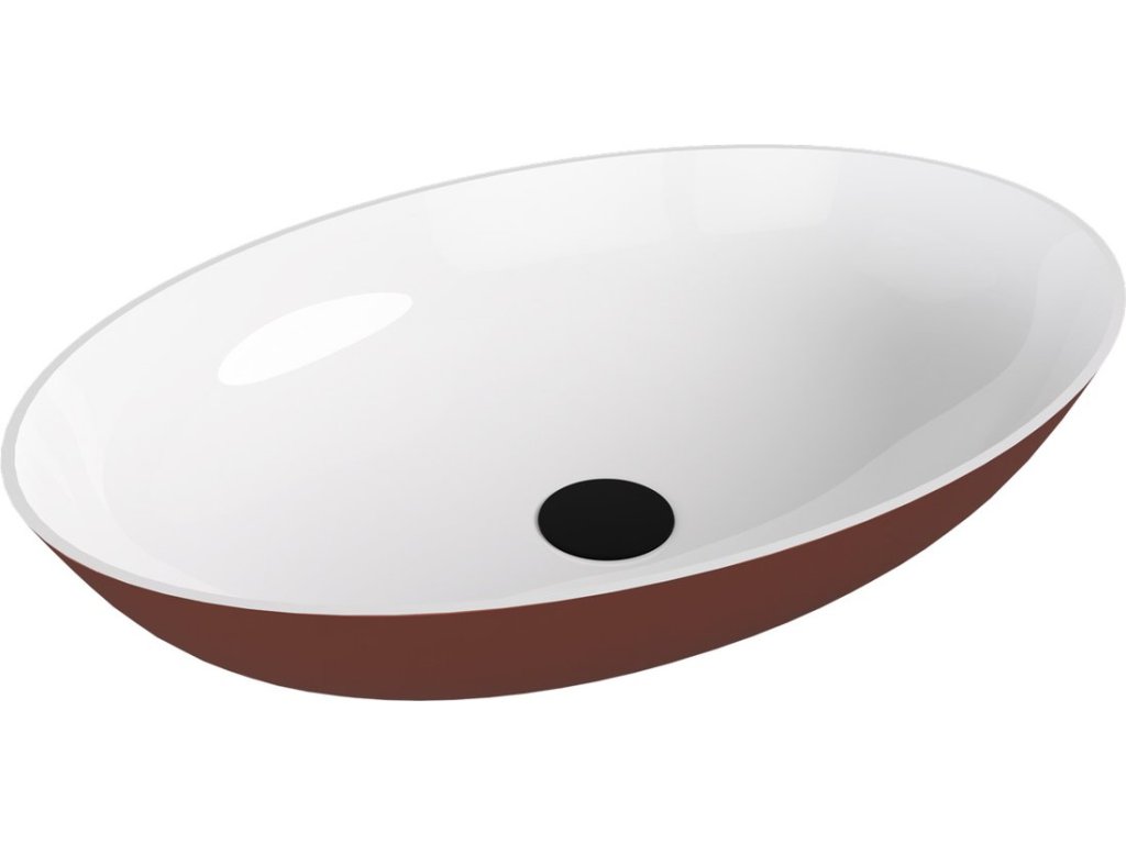 BANERA OVAL umývadlo na dosku, liaty mramor, 60x40cm, biela/hnedá mat