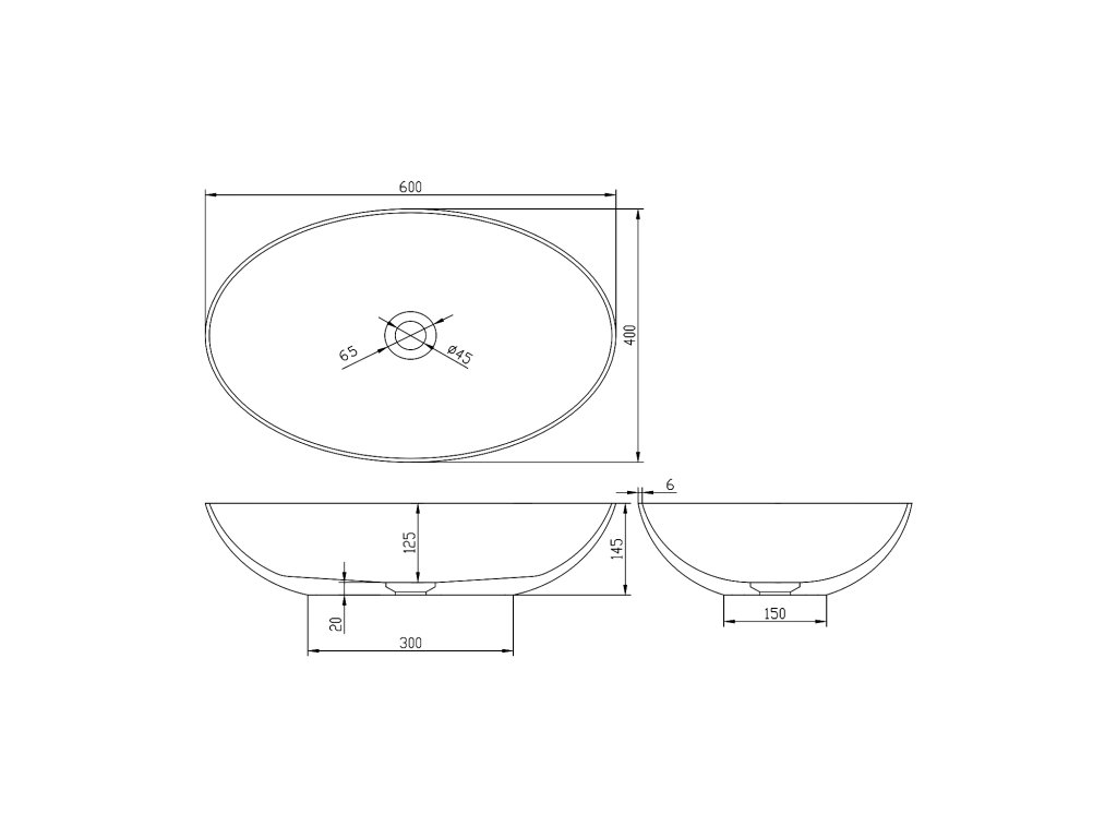 BANERA OVAL umývadlo na dosku, liaty mramor, 60x40cm, šedá mat