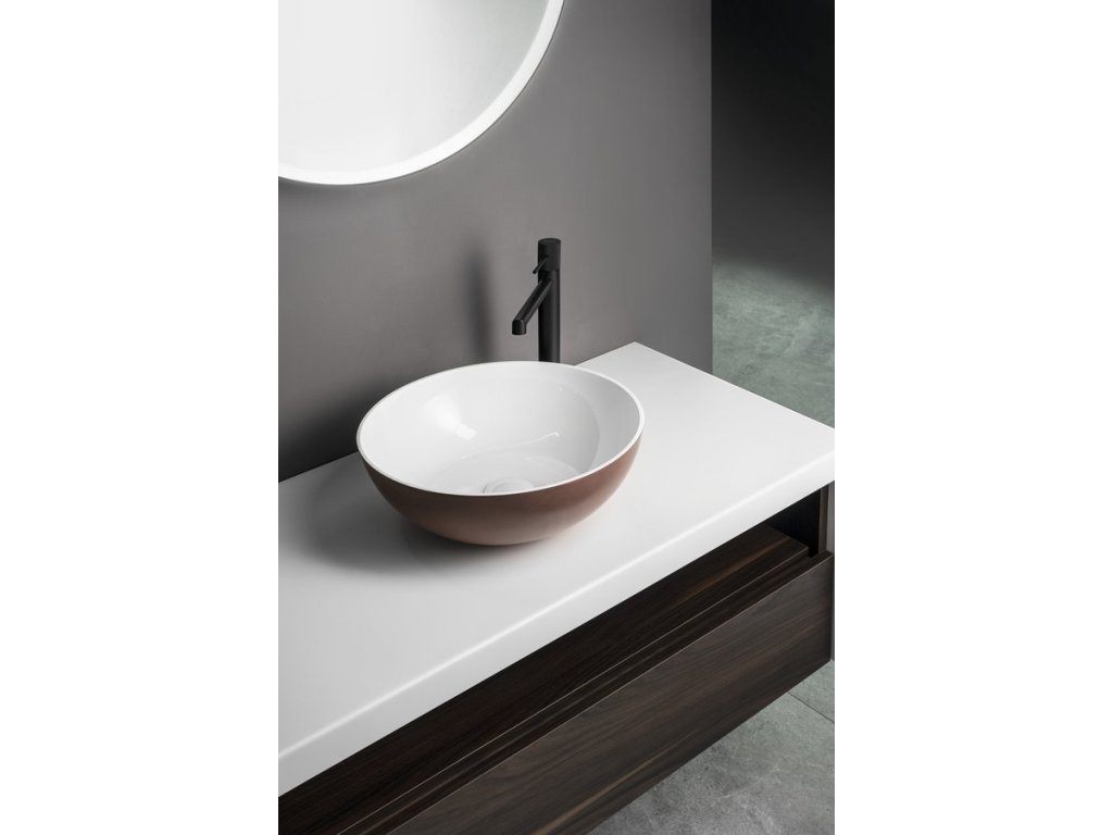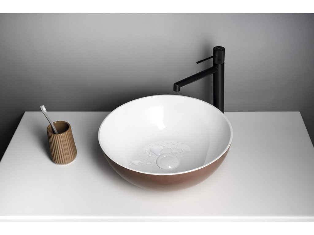 BANERA ROUND umývadlo na dosku, liaty mramor, priemer 39cm, biela/hnedá mat
