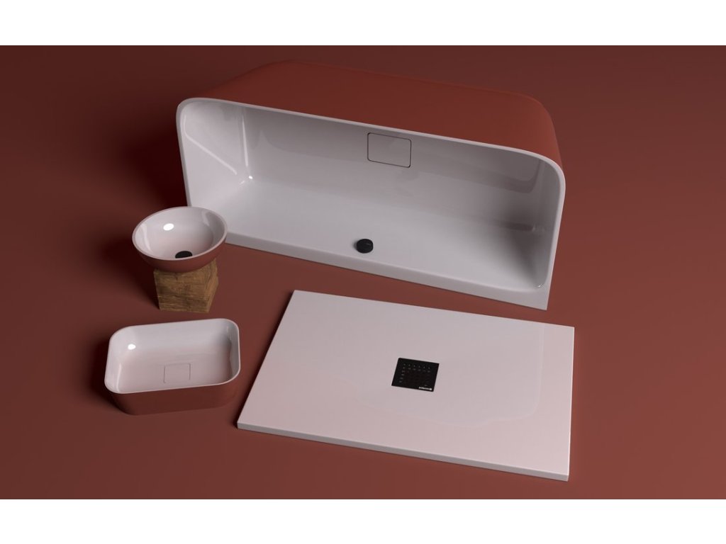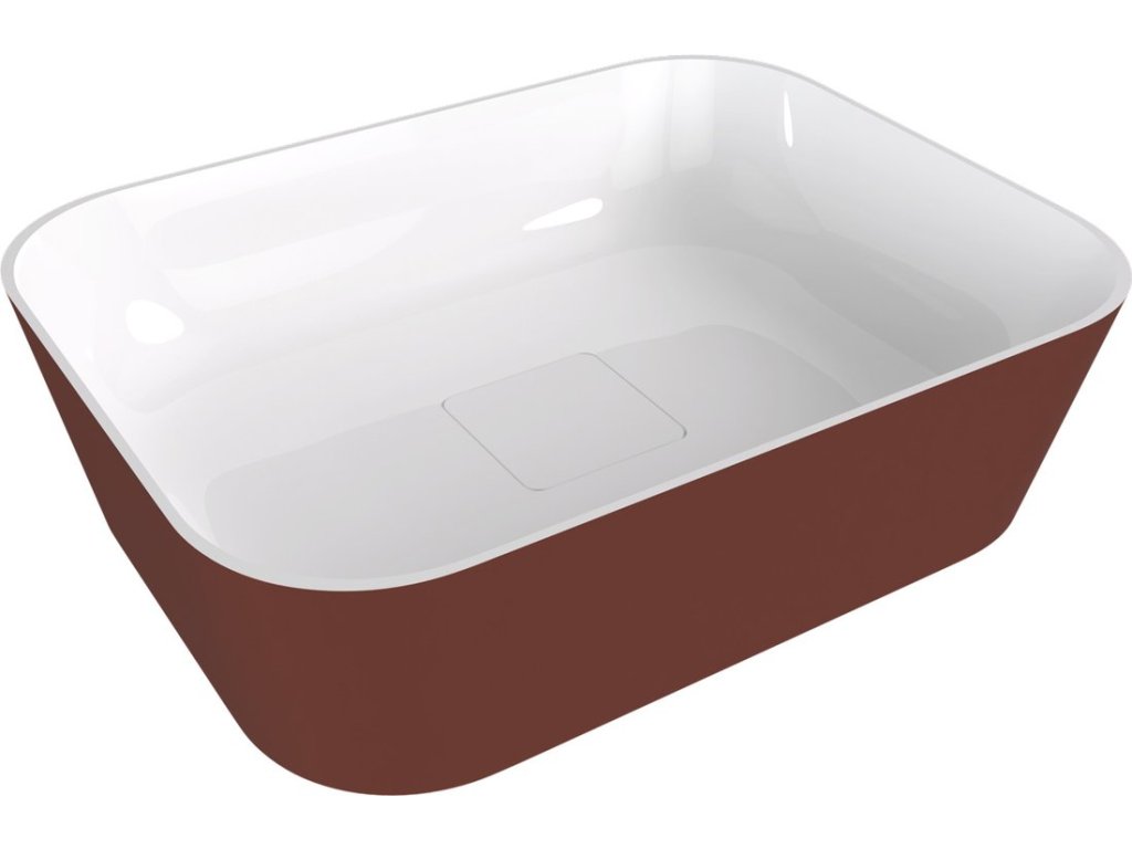 BANERA SQUARE umývadlo na dosku, liaty mramor, 50x36cm, biela/hnedá mat