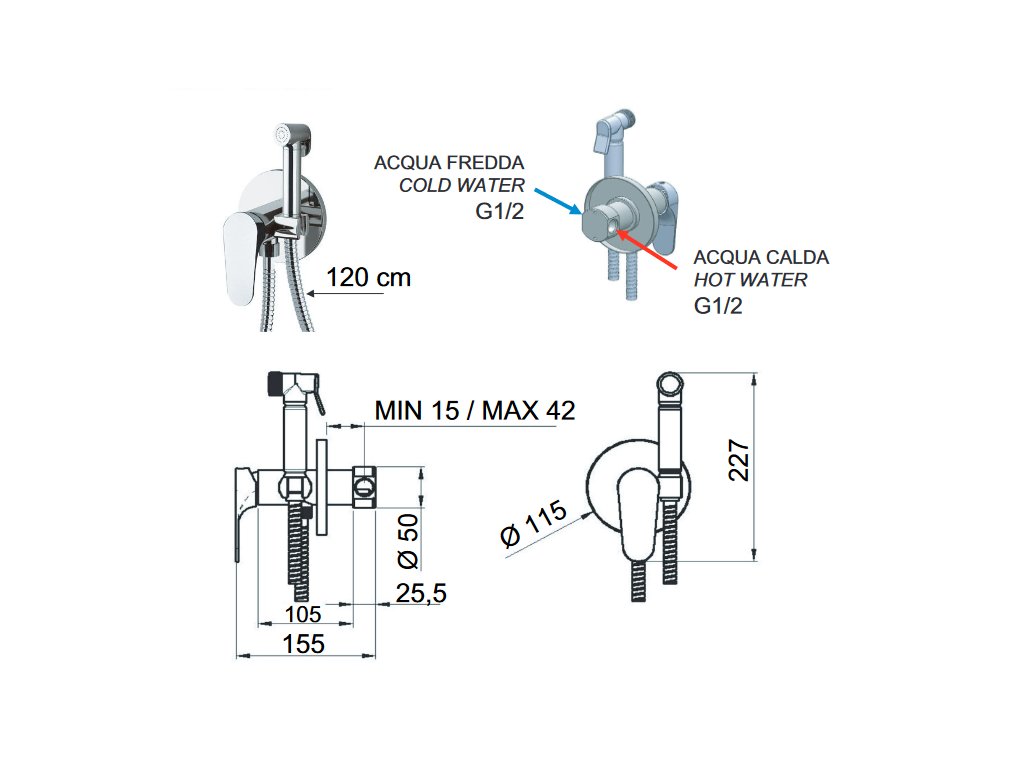 - Vrátane podomietkového modulu, sprchovej hlavici a sprchovej hadici dlhej 120 cm