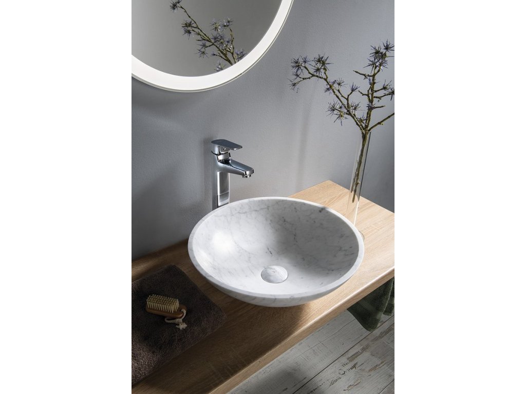 BLOK kamenné umývadlo Ø 42 cm, biela carrata mat