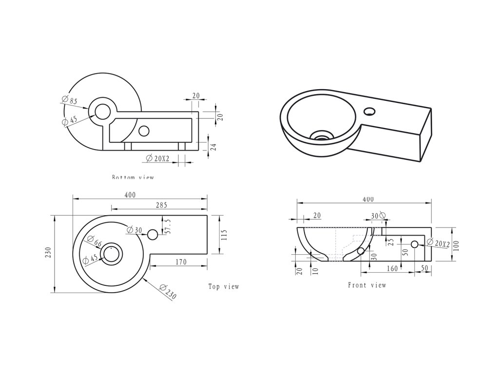 BLOK kamenné umývadlo 40x23cm, čierny Antracit
