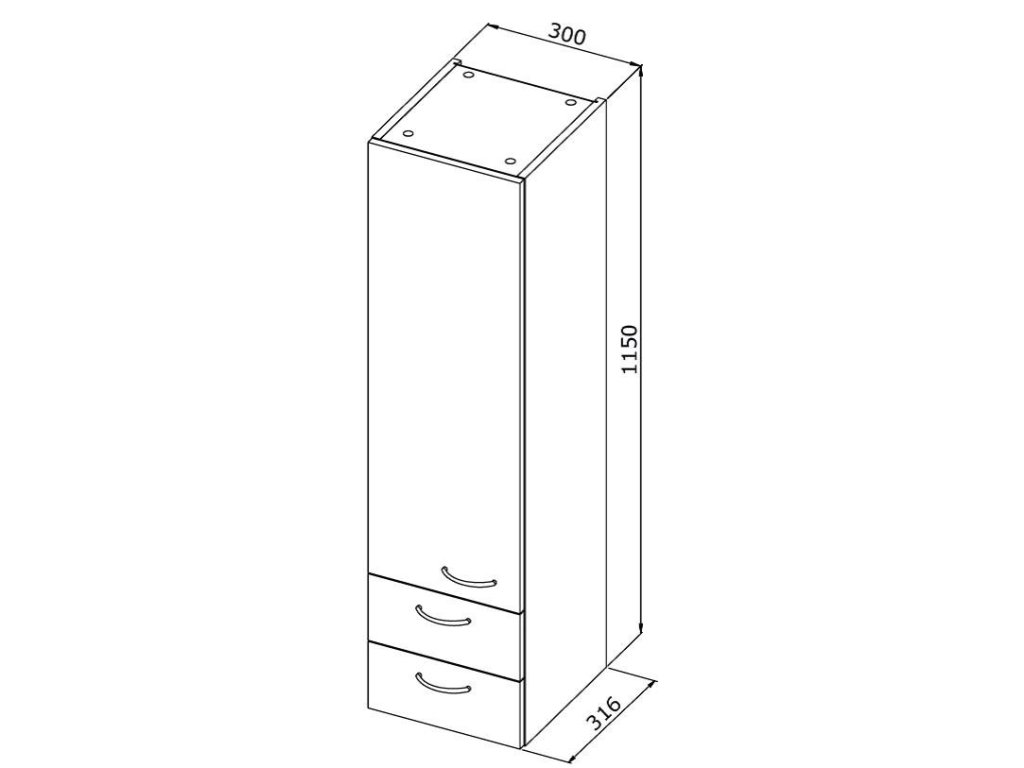 - Vysoká bočná skrinka C (30 × 31,6 × 115 cm), 1 dvierka, 2 šuplíky, pravé prevedenie