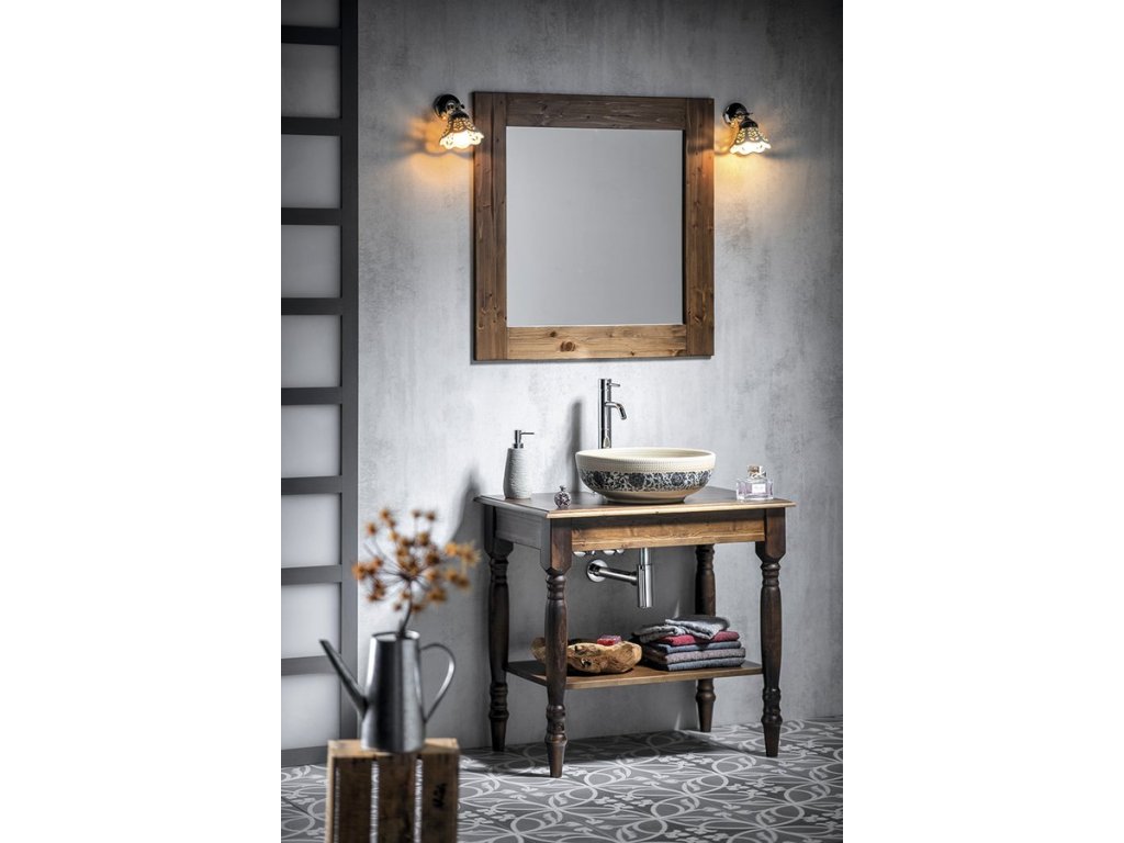 BRAND zrkadlo v drevenom ráme 80x80cm, morený smrek