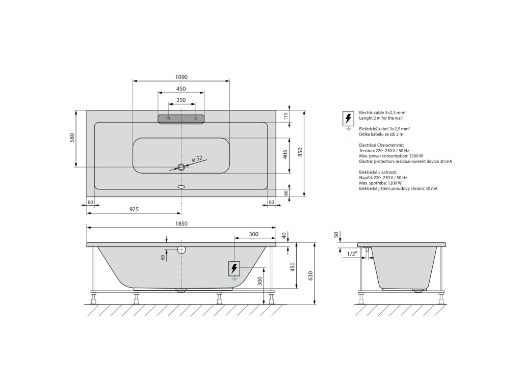 - Jednoduchá inštalácia (ako klasické vane + el. prívod)