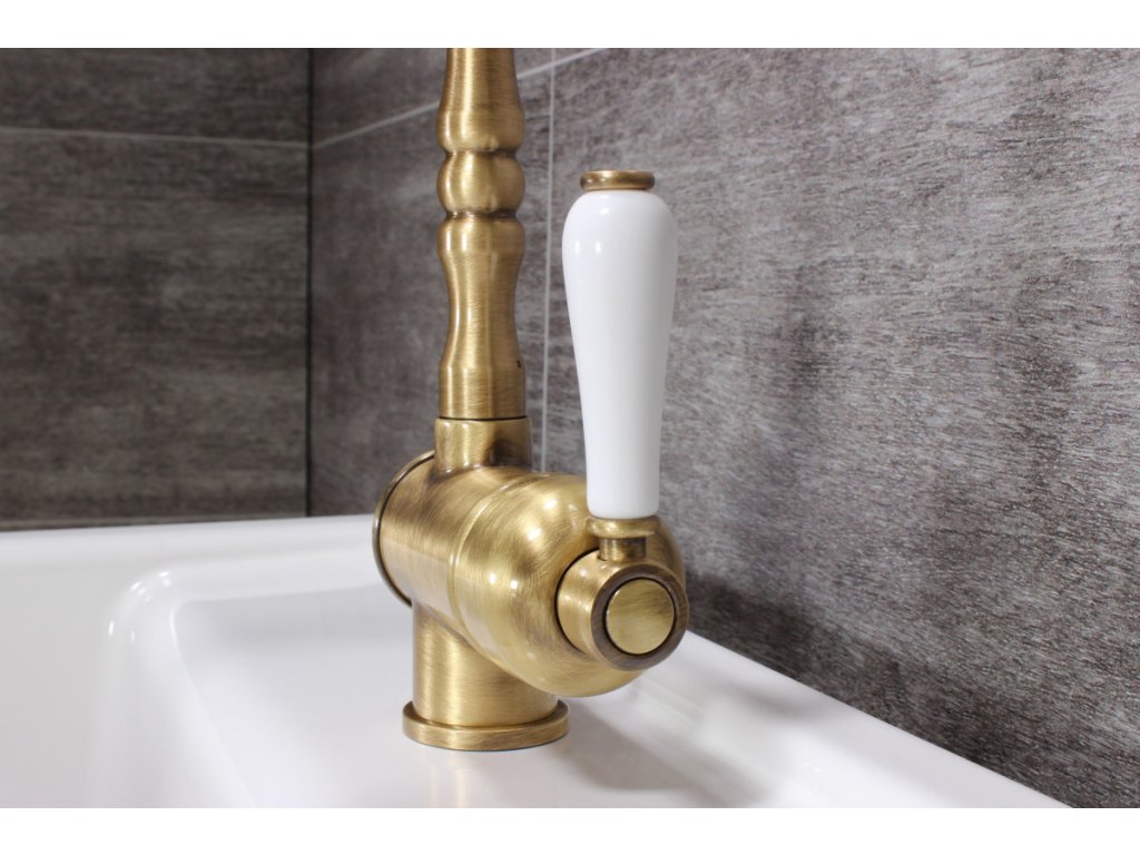 Rustikálnu kuchynskú batériu Chambord RC 800 doladíte ako do retro, tak aj do provencie kuchyne ku keramickému aj granitovému drezu. Drezovú batériu k tomu predurčuje jej mosadzný brúsený povrch, ktorý dodá šmrnc celému umývaciemu centru.