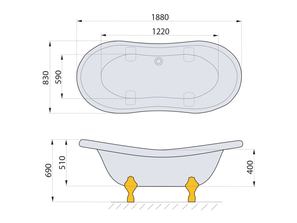 CHARLESTON voľne stojaca vaňa 188x83x69cm, nohy bronz, čierna/biela