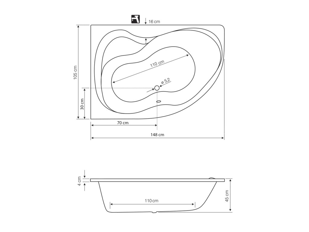 CIDLINA vaňa 150x105x45 cm, ľavá, biela