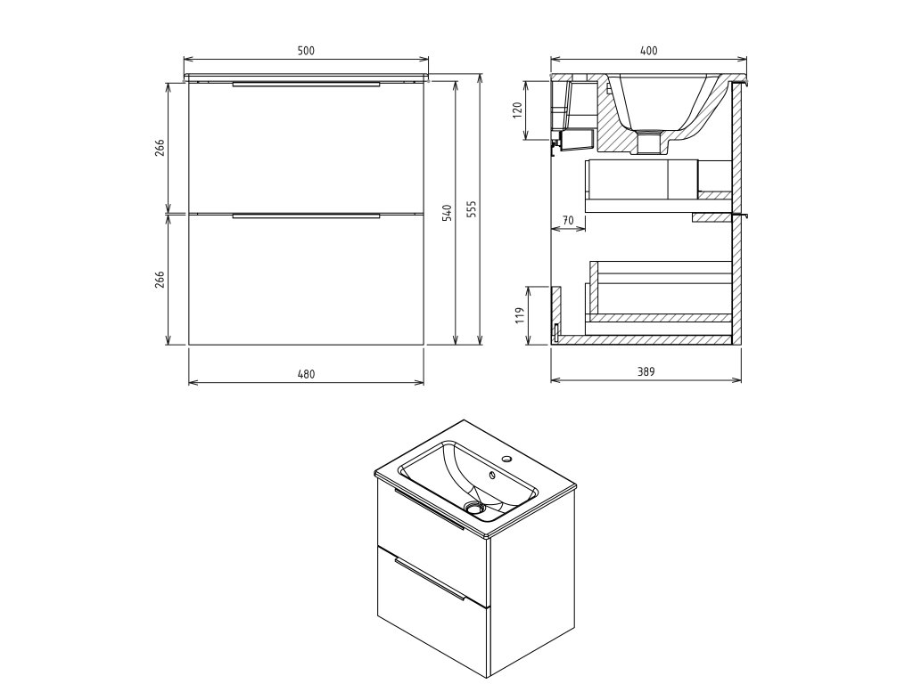 CIRASA umývadlová skrinka 48x54x39cm, borovica rustik