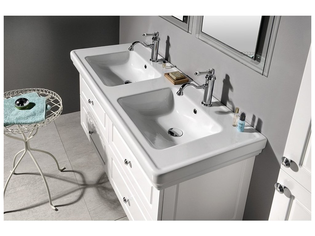 CLASSIC keramické dvojumývadlo 125x54cm, biela ExtraGlaze