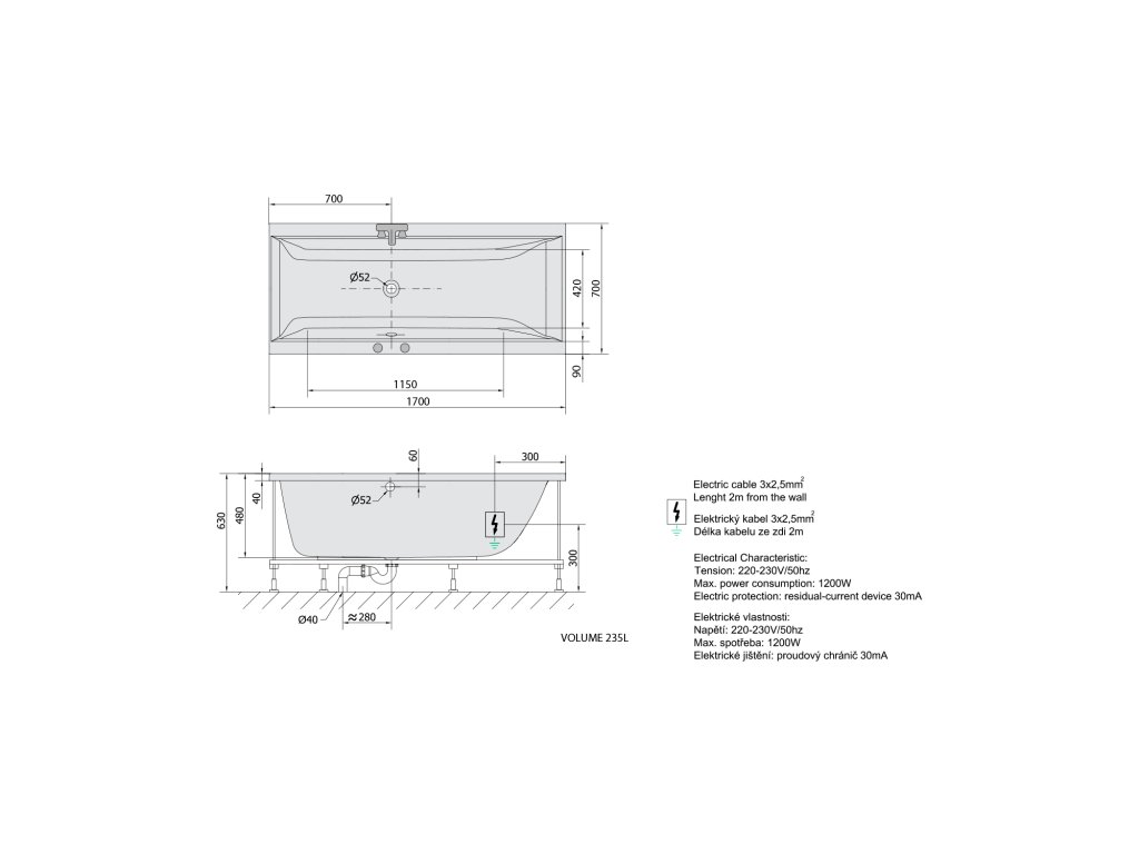 - Jednoduchá inštalácia (ako klasické vane + el. prívod)