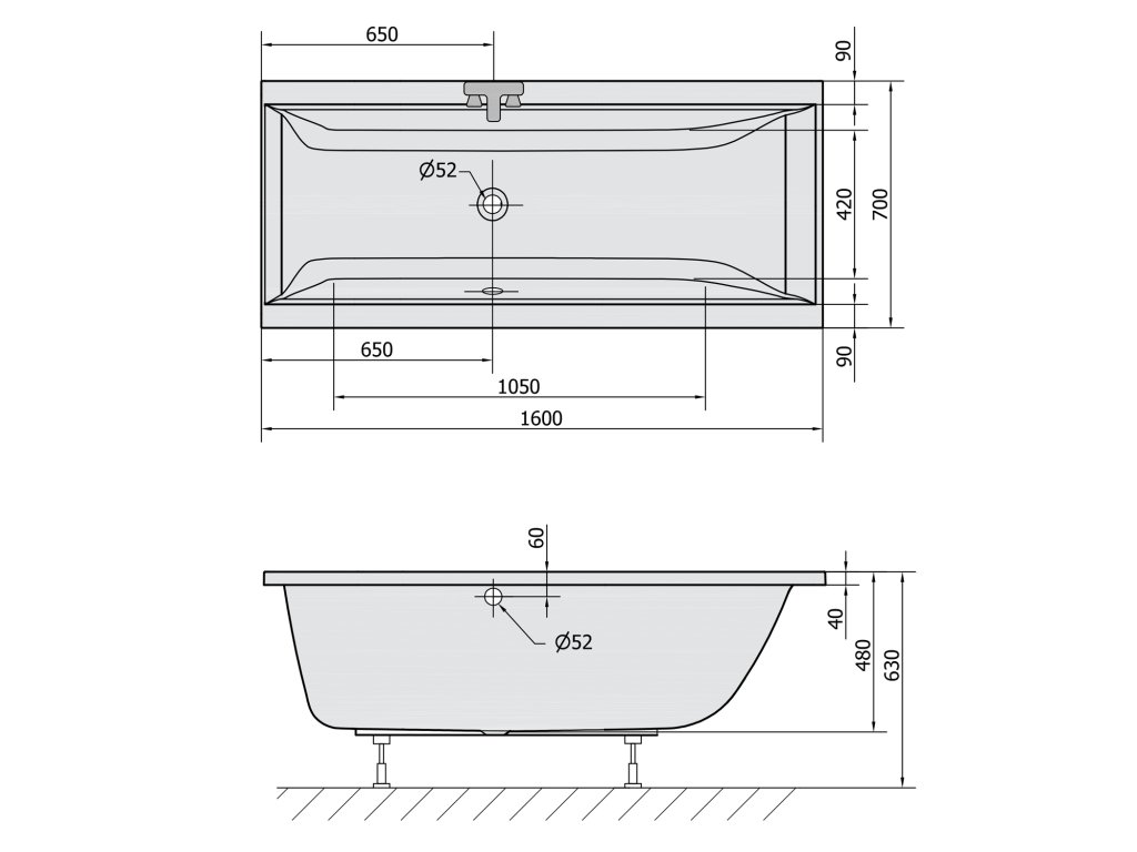 CLEO obdĺžniková vaňa 160x70x48cm, ivory