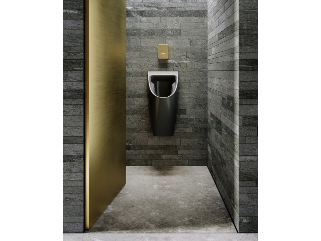 COMMUNITY urinál so zakrytým prívodom vody, Rimless, 31x65cm, čierna mat