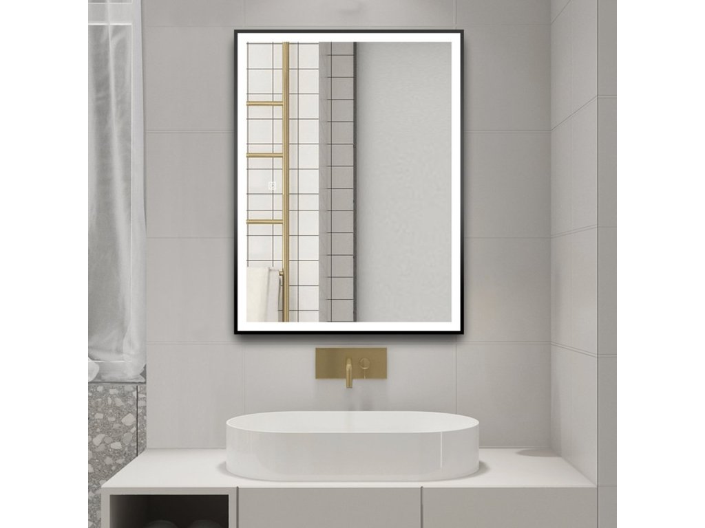 CORNA zrkadlo s LED osvetlením 60x80cm, dotykový senzor, stmievateľné, čierna mat