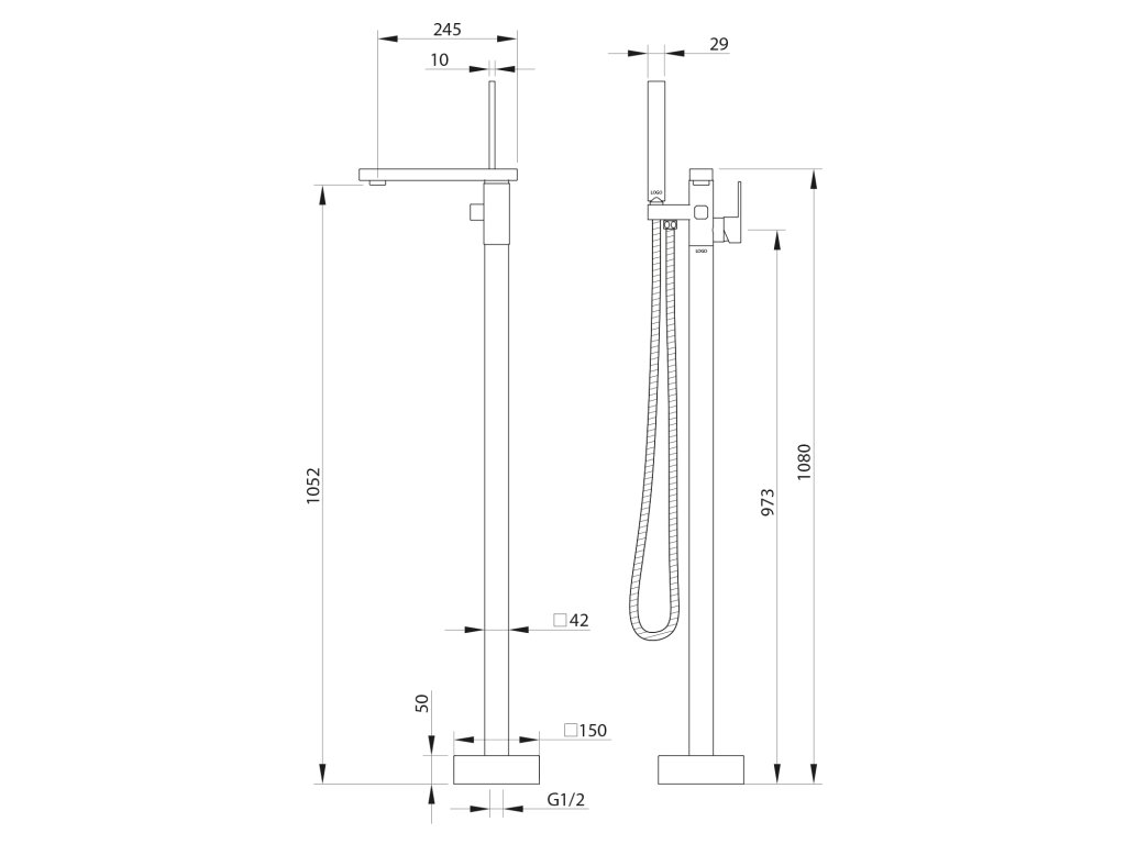 CUBEMIX vaňová batéria do podlahy, čierna mat
