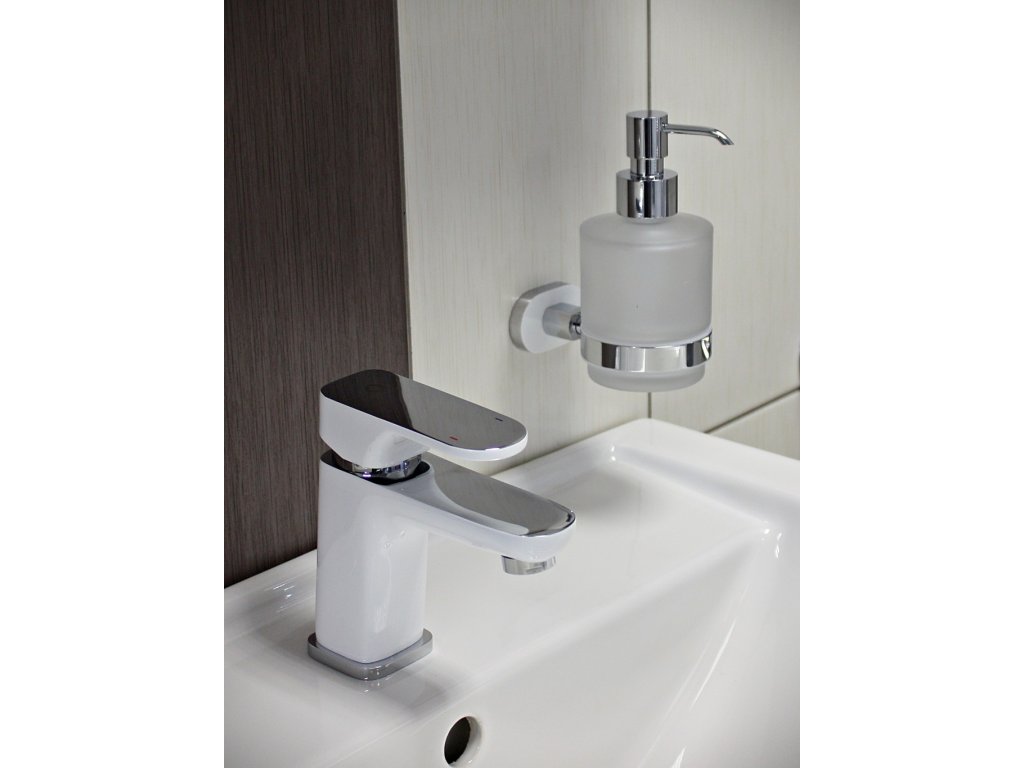 - držák dávkovače je vyroben z mosazi s povrchovou úpravou chrom/bílá