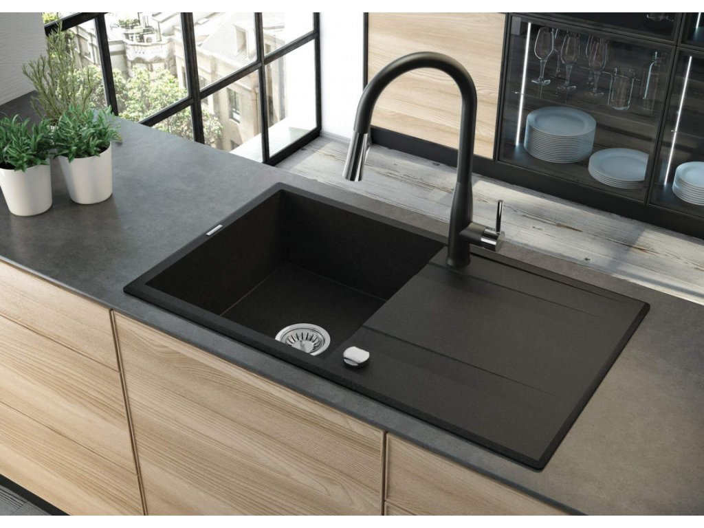 - granitový drez s praktickým odkvapkávačom a excentrickým ovládaním