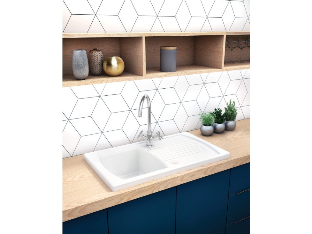 - biely keramický drez s praktickým odkvapkávačom