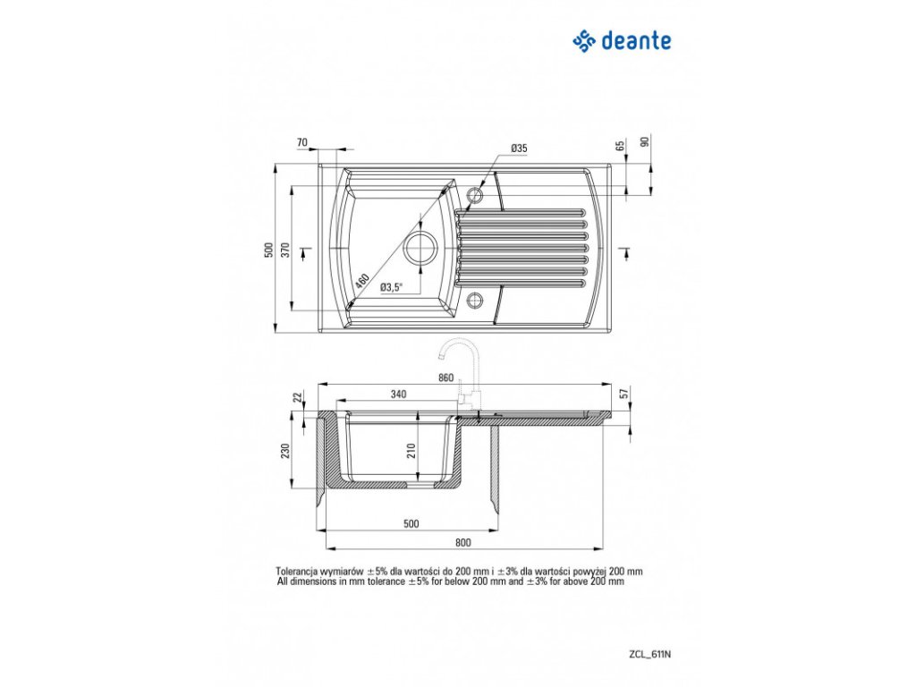 Elegantný keramický drez Deante Lusitano 860.0 od veľmi známeho poľského výrobcu drezov Deante disponuje priestrannou vaničkou a odkvapom. Firma Deante je na trhu viac ako 30 rokov, predstavuje záruku kvality. Výrobky značky Deante sú tzv. ProEco, to znamená, že používajú prírodné materiály ako je práve keramika a Eco obaly.