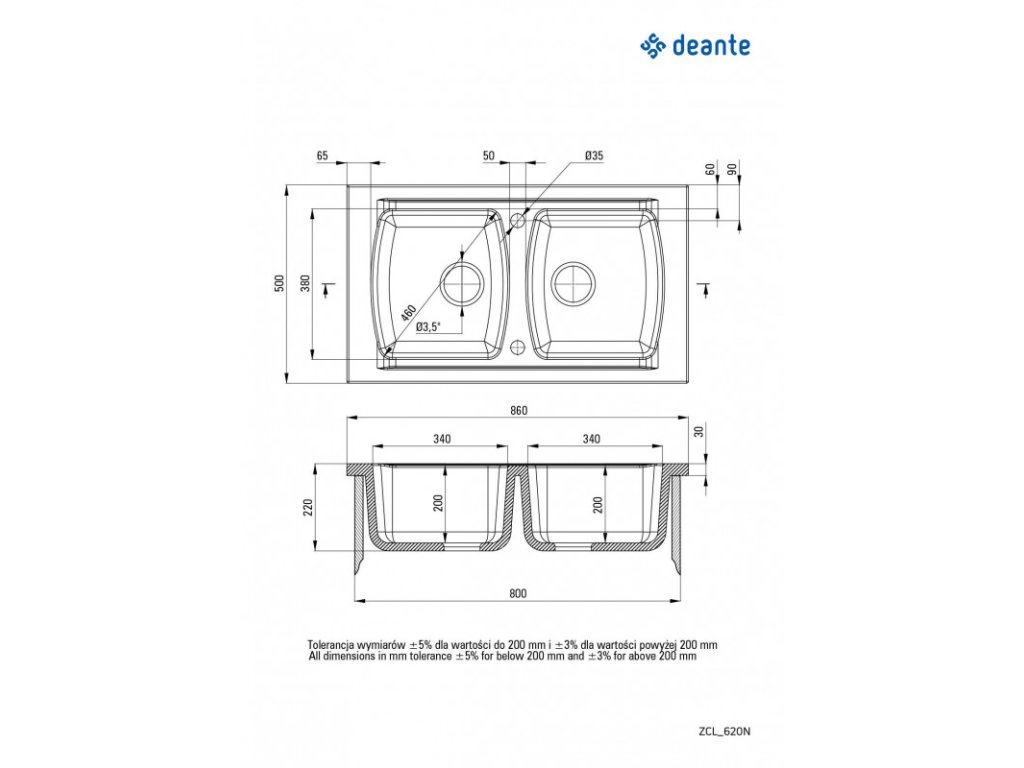 Pôvabný keramický dvojkomorový drez Deante Lusitano 860.2 od veľmi známeho výrobcu kuchynských drezov Deante. Firma Deante je na trhu viac ako 30 rokov, predstavuje záruku kvality. Výrobky značky Deante sú tzv. ProEco, to znamená, že používajú na výrobu prírodné materiály ako je práve keramiky. Rovnako je firma šetrná k životnému prostrediu, využíva Eco obaly.